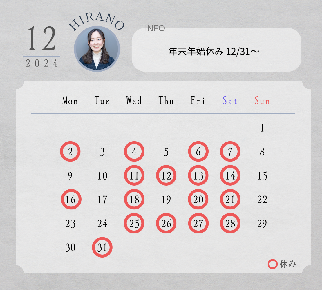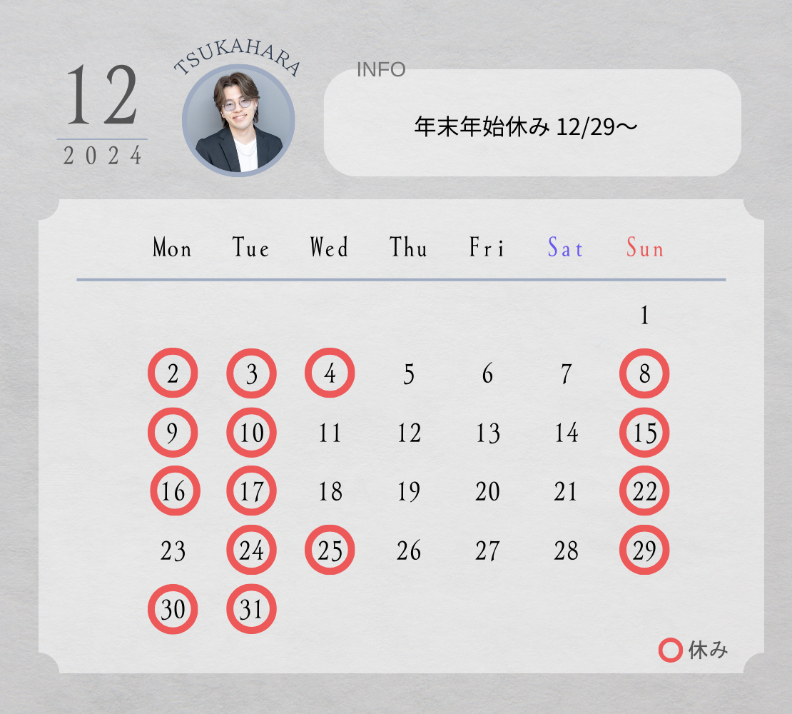 2024年12月のスタッフ出勤カレンダー